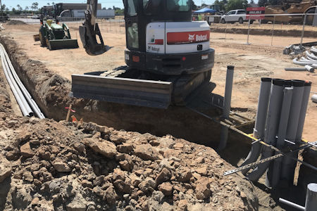 Looking for a contractor who can do your underground work? You don't need to find a site prep or trenching / backhoe sub-contractor when you're working with Dynamic Electric. We have all the equipment and skilled technicians for any Utility or Underground projects you're doing. Our crews have done 120 Volt to 480 Volt, Single and Three Phase underground work under Rule 16 for Pacific Gas & Electric, Southern California Edison, as well as CATV lines for utilities like Comcast, AT&T and others. Whether your job calls for trenches, underground vaults or any other excavation needs, Dynamic Electric has got you covered!